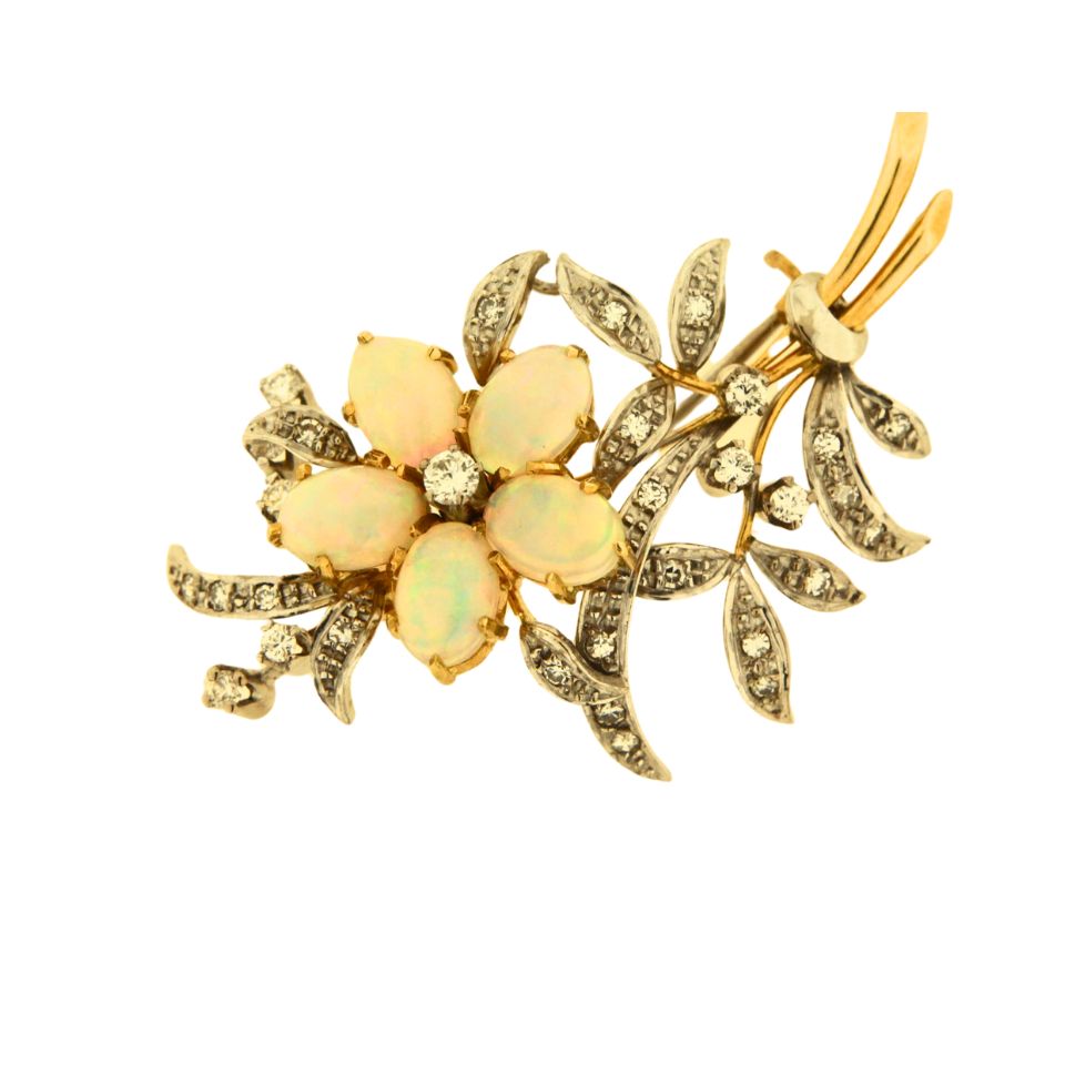 Vintage 18ct Gold Opal & Diamond Brooch