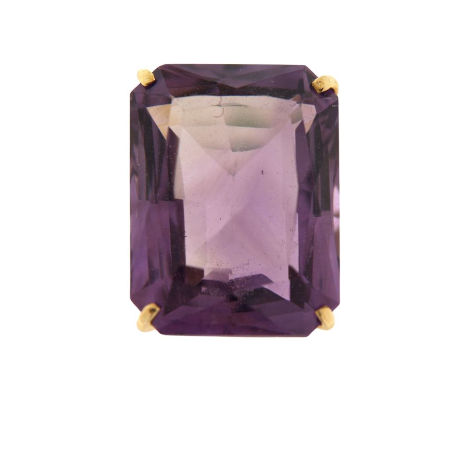 A vintage 9ct gold ring set with a 20mm x 15.20mm amethyst.  Size O