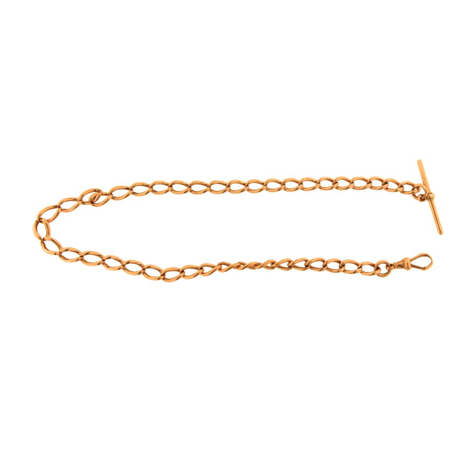 A vintage 9ct rose gold Albert chain.  Size 14″