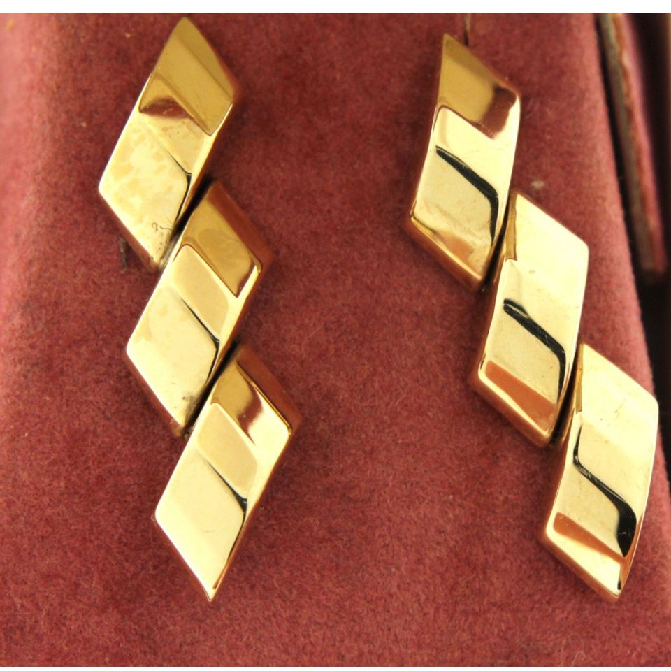 A pair of 9ct yellow and white gold, London hallmark, 4g.  Size 3cms x 1cms