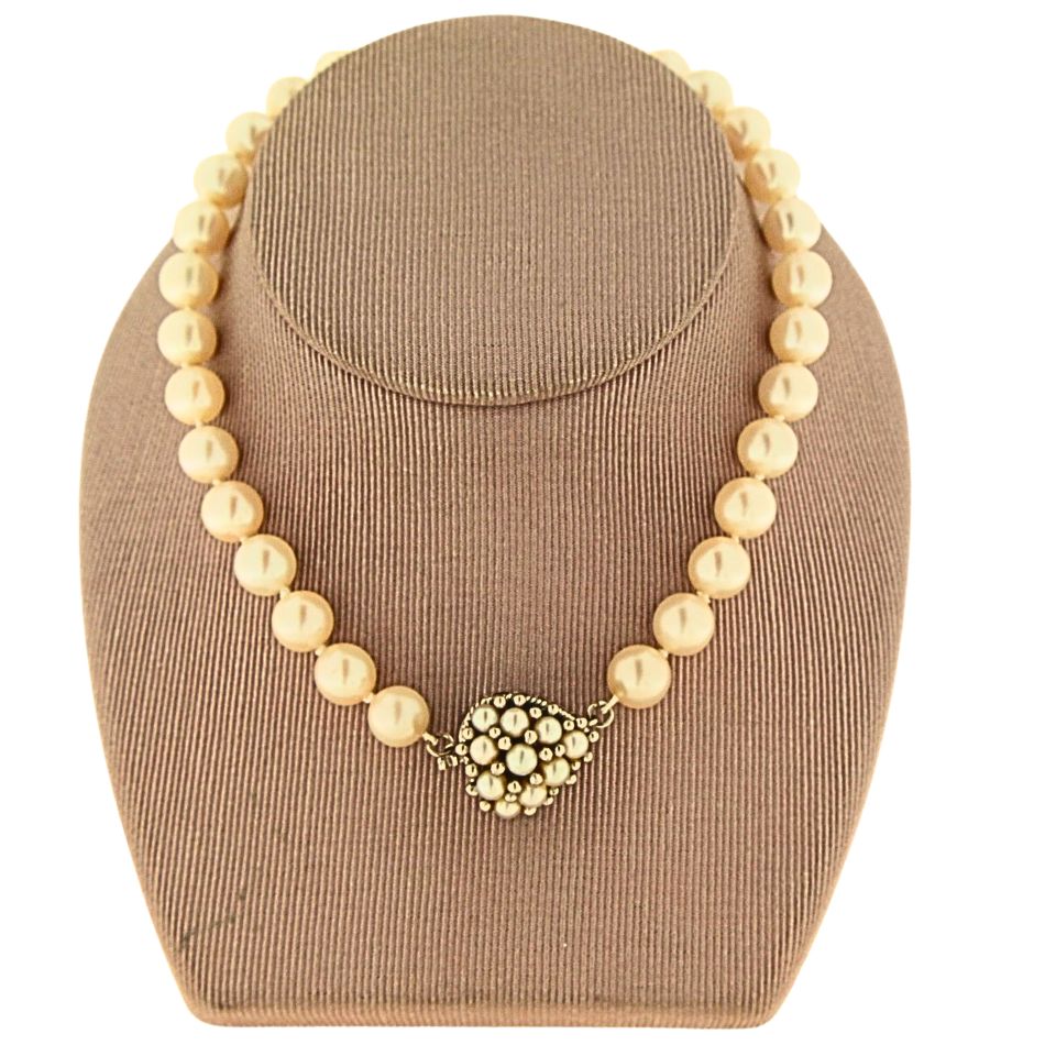 A vintage cultured pearl necklaces, 7.65mm pearls, with a 14ct white gold clasp.  Size 18″